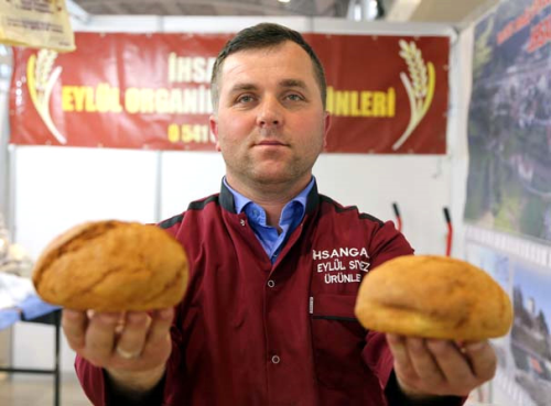 Kastamonu'nun İhsangazi ilçesinden gelerek etkinlikte stant açan İrfan Çakal, kendi arazilerinde ekip biçtiği siyez buğdayından unlu mamuller elde ettiğini belirtti.