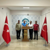 Kızılay yetkilileri, Kaymakam Türker'e desteklerinden dolayı plaket takdim etti. - VAN